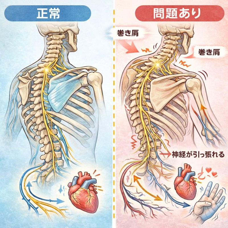 ・首〜肩上部がガチガチ → 肝気鬱結タイプ ストレス・緊張・我慢が多い。イライラや目の疲れを伴う ・肩甲骨の内側が重だるい → 血瘀タイプ 長時間同姿勢・運動不足。刺すような痛み ・肩全体がズーンと重い → 痰湿タイプ 胃腸の弱り・湿気の影響。むくみ、眠気、頭重感が出やすい ・冷えると痛む・温めると楽 → 陽虚・寒凝タイプ 冷房・冷飲食の影響。寒がり、疲れやすさがセット ・夕方〜夜に悪化、ほてり感あり → 陰虚タイプ 潤い不足。寝不足、ドライアイ、微熱感を伴うことも。 あなたの肩こりはどのタイプ?