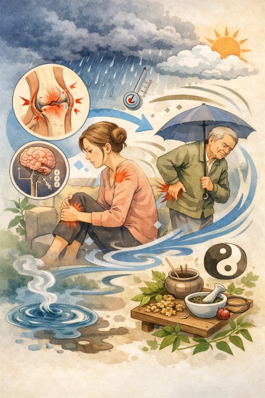 そんな時になんとなくだるーい感じしちゃう💦 (ᯫ᳐˶ꔷ֊ꔷᯫ᳐) はぃ.ᐟ 気圧が下がると体が痛むのはなぜ? 低気圧で体内の水分バランスや血流が変化し、関節や筋肉の組織がわずかに膨張し、神経が刺激されやすくなるためだよ。 さらに自律神経も乱れやすく痛み感受性も上がる 中医学でも流れの滞りは痛みの原因と考えるよ。 いわゆる「天気痛」は体の反応だよ。 |